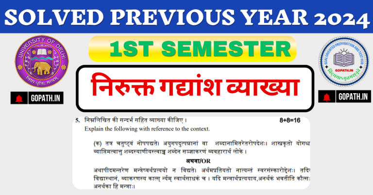 प्रिय विद्यार्थियों, इस पोस्ट में निरुक्त गद्यांश व्याख्या Nirukt की टिप्पणी व्याख्या हिंदी में है। यह देहली विश्वविद्यालय परास्नातक DU, M.A …