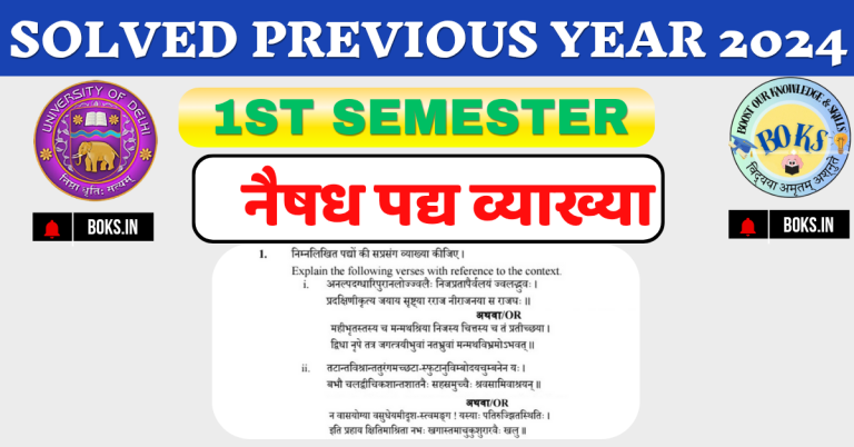प्रिय विद्यार्थियों, इस पोस्ट में नैषधीयचरितम् Naishadhiyacharitam का ससंदर्भ तथा सप्रसंग व्याख्या है। इसके अंत में व्याकरणात्मक टिप्पणी भी दिया …