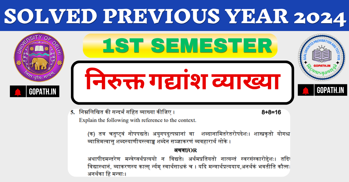प्रिय विद्यार्थियों, इस पोस्ट में निरुक्त गद्यांश व्याख्या Niruktam की टिप्पणी व्याख्या हिंदी में है। यह देहली विश्वविद्यालय परास्नातक DU, M.A Sanskrit का previous year प्रश्न पत्र का उत्तर है।